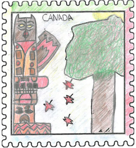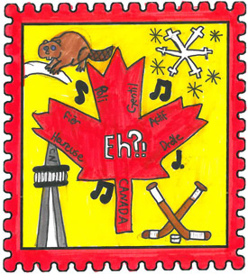 Comme prélude au projet des Fêtes du patrimoine, le concours Invente un timbre permet aux élèves de représenter, par le biais d’une œuvre d’art, un élément du patrimoine. Il peut s’agir d’un vieil édifice, d’un ancêtre, d’un paysage, d’un animal, d’un héro canadien, d’un événement historique important ou de n’importe quel autre élément spécial à ses yeux.
