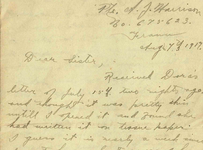 Harrison left behind his parents George and Anna, and his three sisters—Edna, Minnie and Dora.