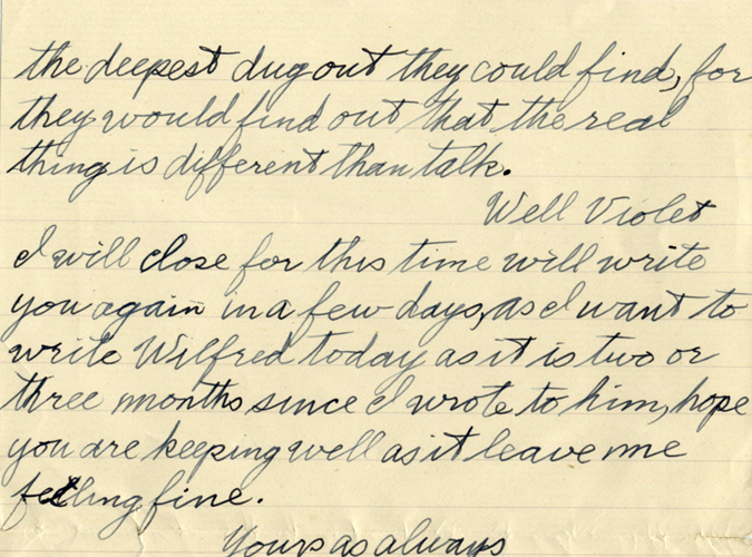Troyer enlisted from Toronto on February 23, 1916, and served with the 166th Battalion. Prior to the First World War, he served in the 33rd Hurons, spending one year as a private. His uniform and medal are on display in the museum in Magnetawan, a small village of three hundred people. Donald McMillan, Violet’s father, was one of the first people in the village in 1865 and worked as the village’s postmaster and druggist. Though Troyer wasn’t religious, his wife was instrumental in starting a church in Magnetawan.