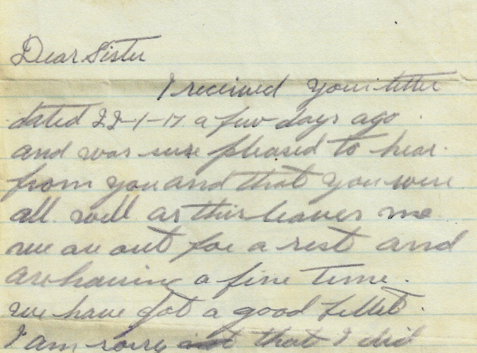 In late January 1917, Leslie Hale wrote to Clara, his sister, back in Stoughton, Saskatchewan. Despite the winter weather and the rough conditions of the trenches, all Hale could think about was his nieces and nephews back home.