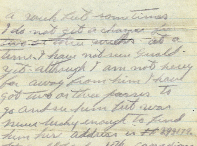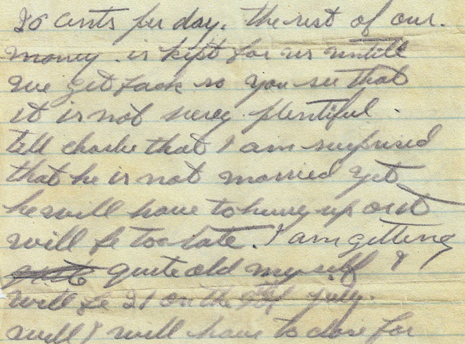 “Dear Sister … Tell children that I am sorry that I could not send them some Xmas presents,” he wrote. “Money is so scarce here, as I only get twenty cents per day. The rest of our money is kept for us until we get back.”
