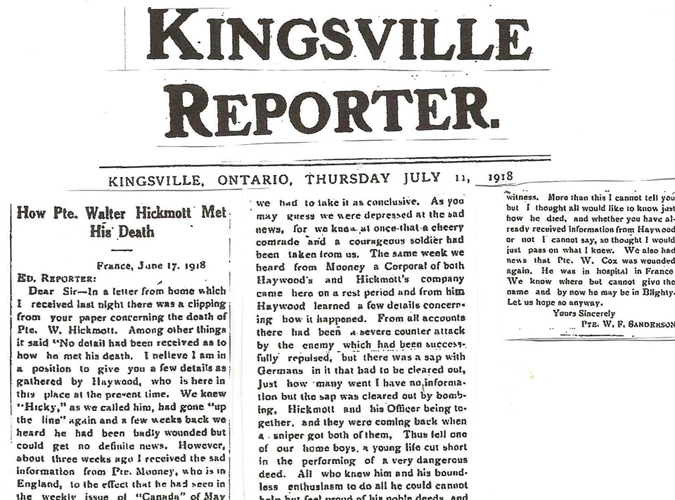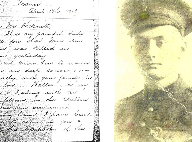 The last thing Walter Hickmott did before shipping out for service in France was to visit with his little sister.