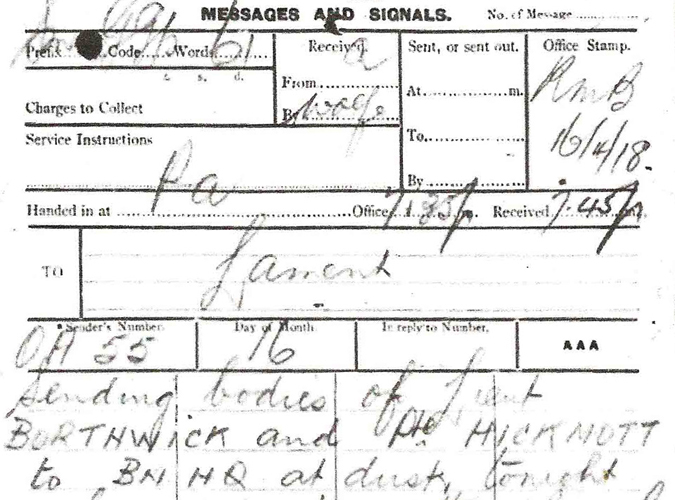 Both Hickmott and Borthwick are buried at Bellacourt Military Cemetery near Arras, France.