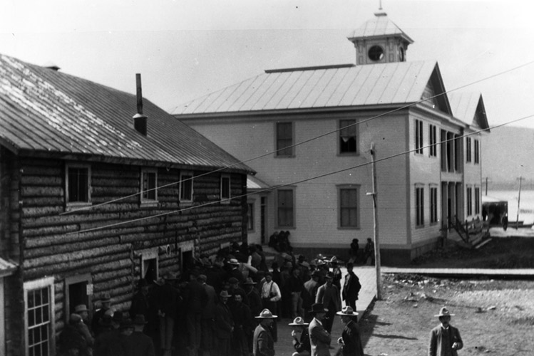En une saison, les vasières au confluent des rivières Yukon et Klondike furent transformées en campements, accueillant jusqu’à 30 000 personnes et faisant de ce village improvisé la plus grande communauté à l’ouest de Winnipeg. Les saloons et bordels y poussaient comme des champignons, menaçant de transformer Dawson en une ville sans foi ni loi. Mais le légendaire Sam Steele, de la police montée, réussit à rétablir l’ordre dans la ville en interdisant le port d’armes de poing.